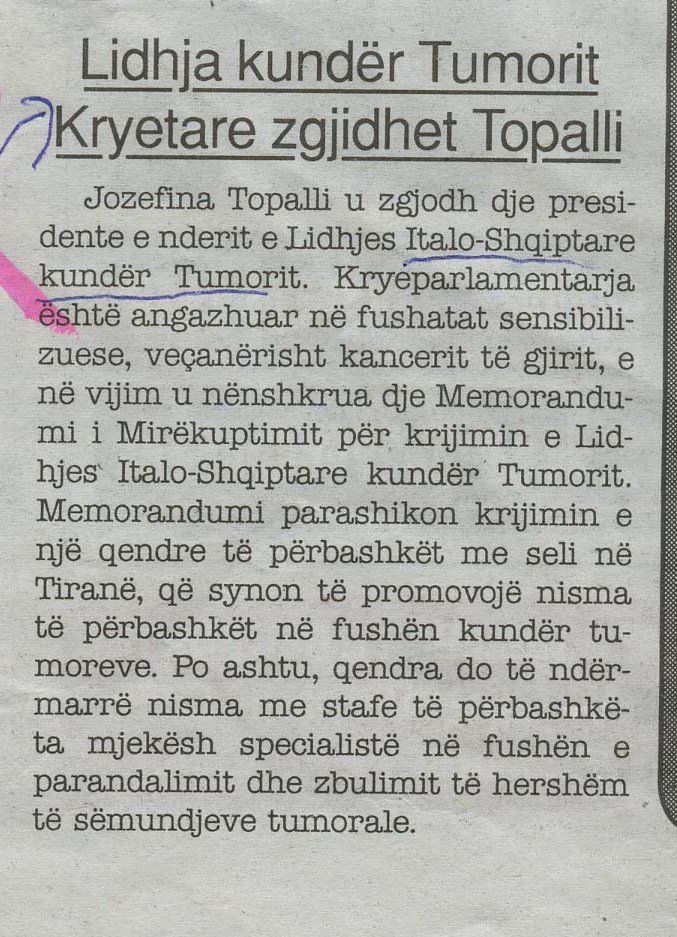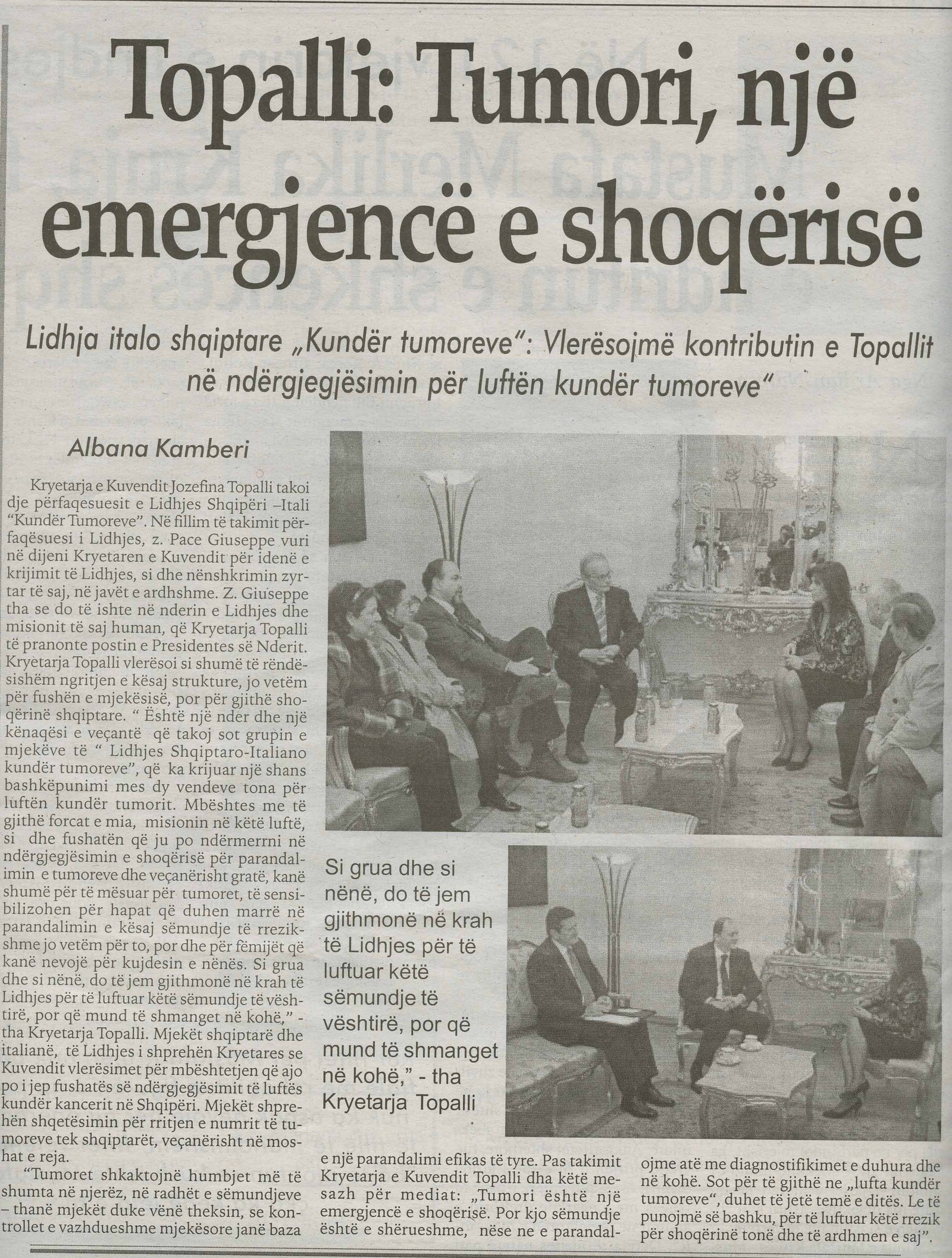 Intervista - Giornali - Registrazione - Lega Tumori Albania