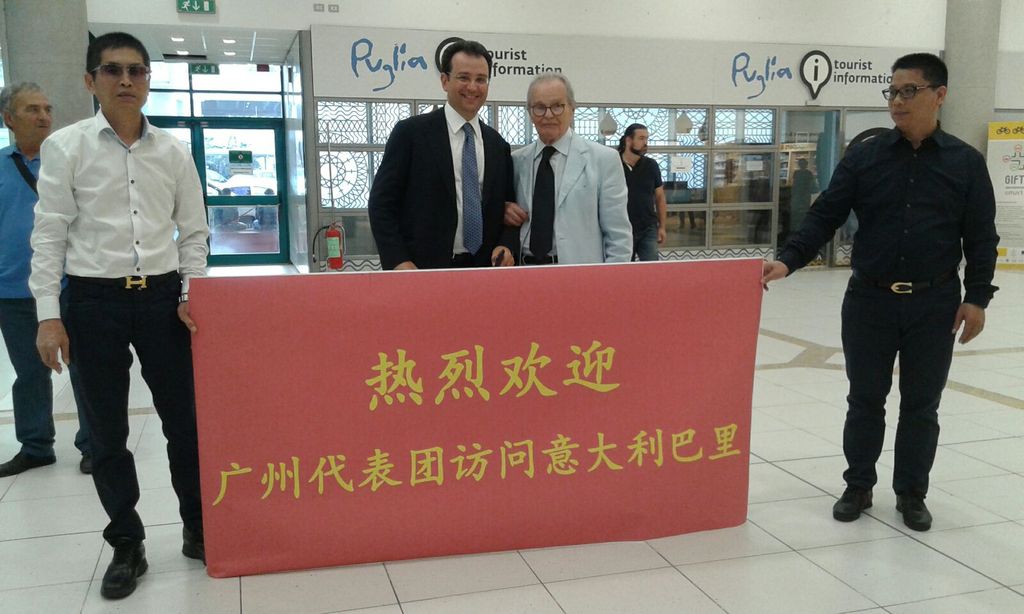 All’incontro con la delegazione cinese, guidata dal direttore generale della Commissione per gli Affari esteri di Canton, Zhang Weicheng, hanno partecipato l’ex sindaco di Bari Franco De Lucia che nel 1986 firmò l’accordo con l’allora sindaco di Canton Senlin Zhu, il presidente della Camera di Commercio Italo-Orientale di Bari, Antonio Barile, e il senatore Giovanni Procacci.